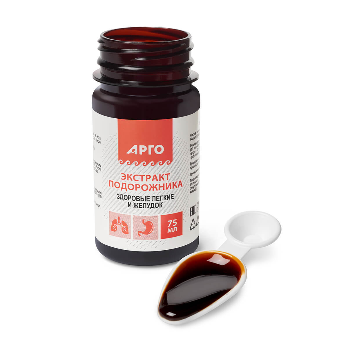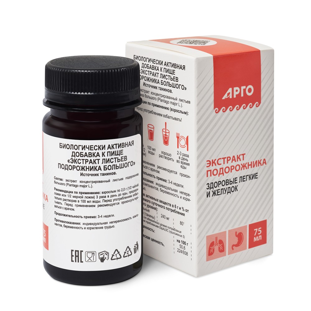 Состав: Экстракт концентрированный листьев подорожника большого (Plantago major L.) Арго