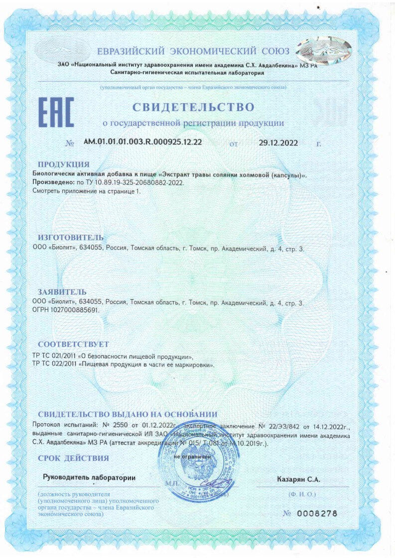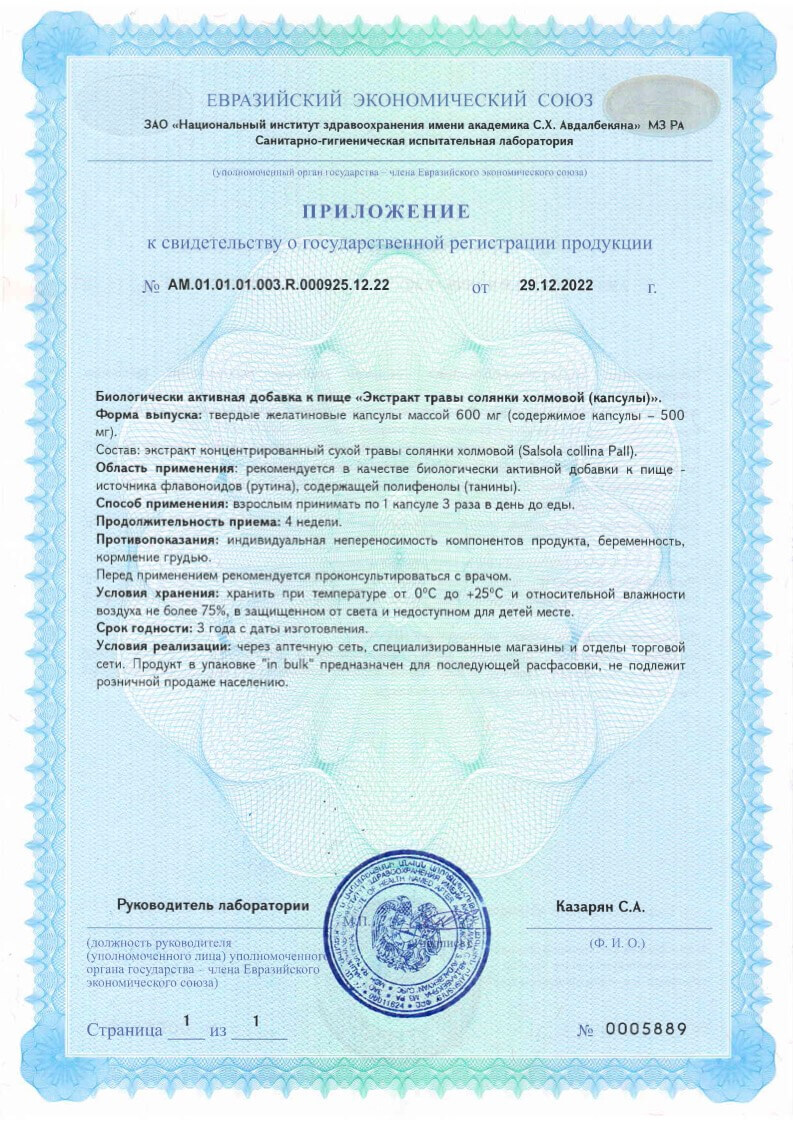 Состав: Экстракт концентрированный сухой травы солянки холмовой (Salsola collina Pall).
